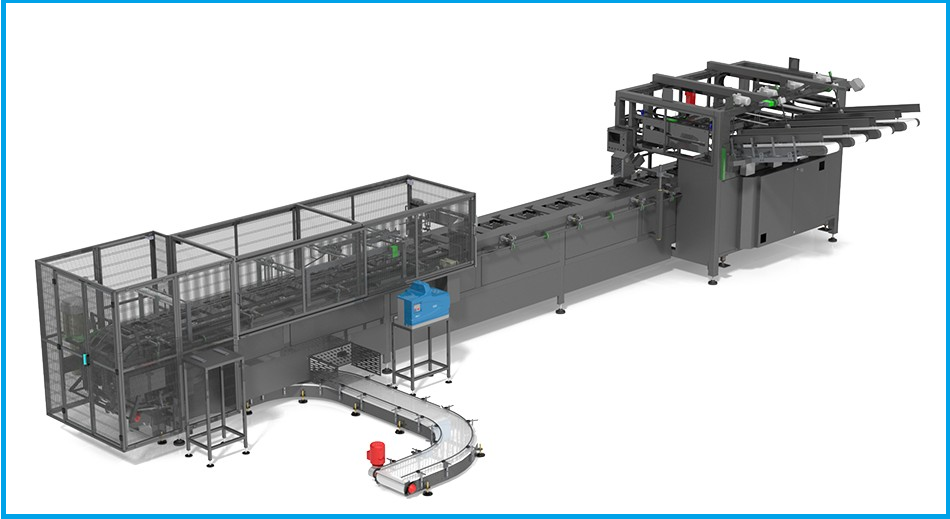 Flexibility and ease of use are the keys to the success of this production line. The machine can handle cartons of all sizes and formats, both folded and unfolded. Quick and easy format changeover...