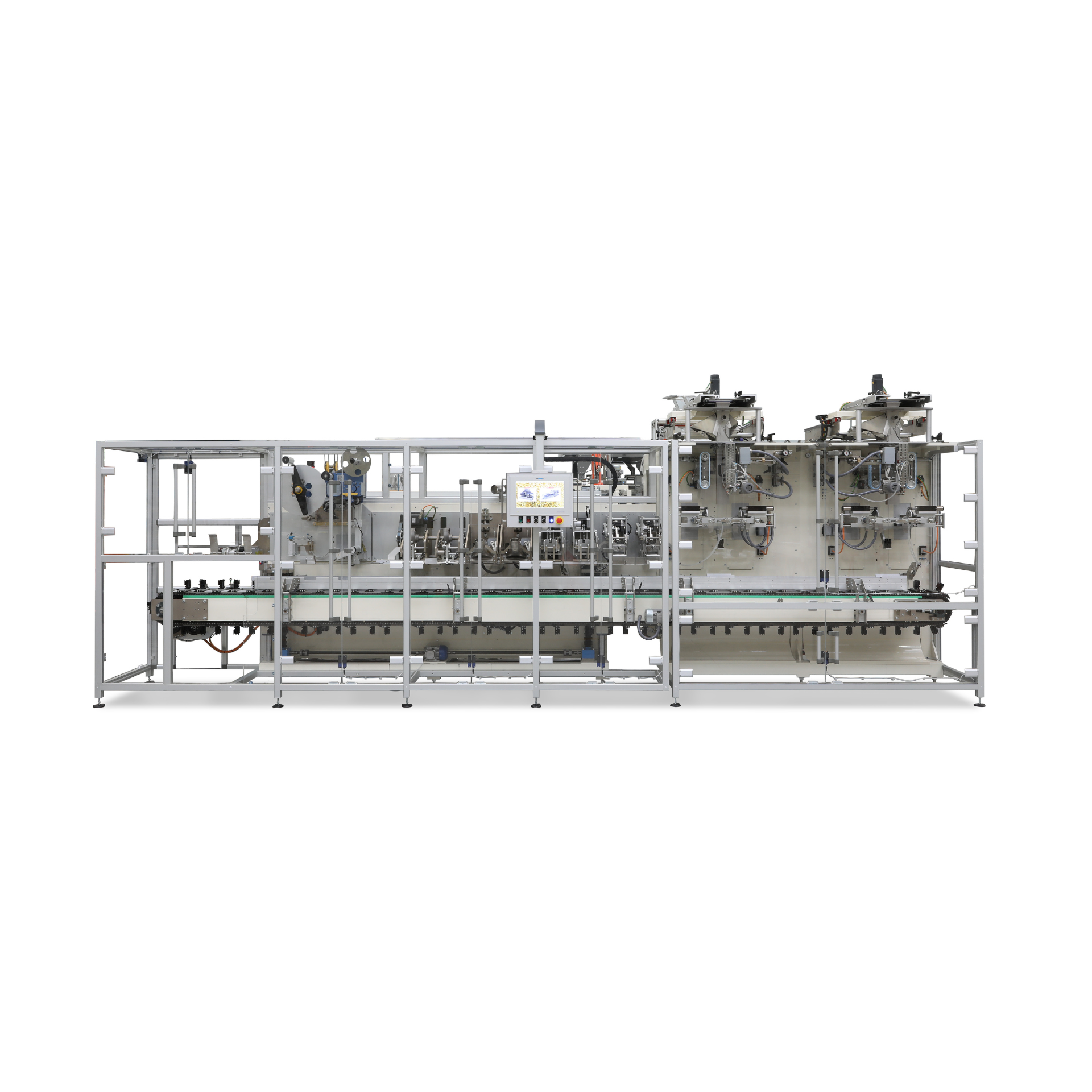 Horizontal double weighing head cartoning machine for long goods in preglued and prefolded cartons. Weighing groups made with our G12 weighers, a fully motorized solution with a patented system for...