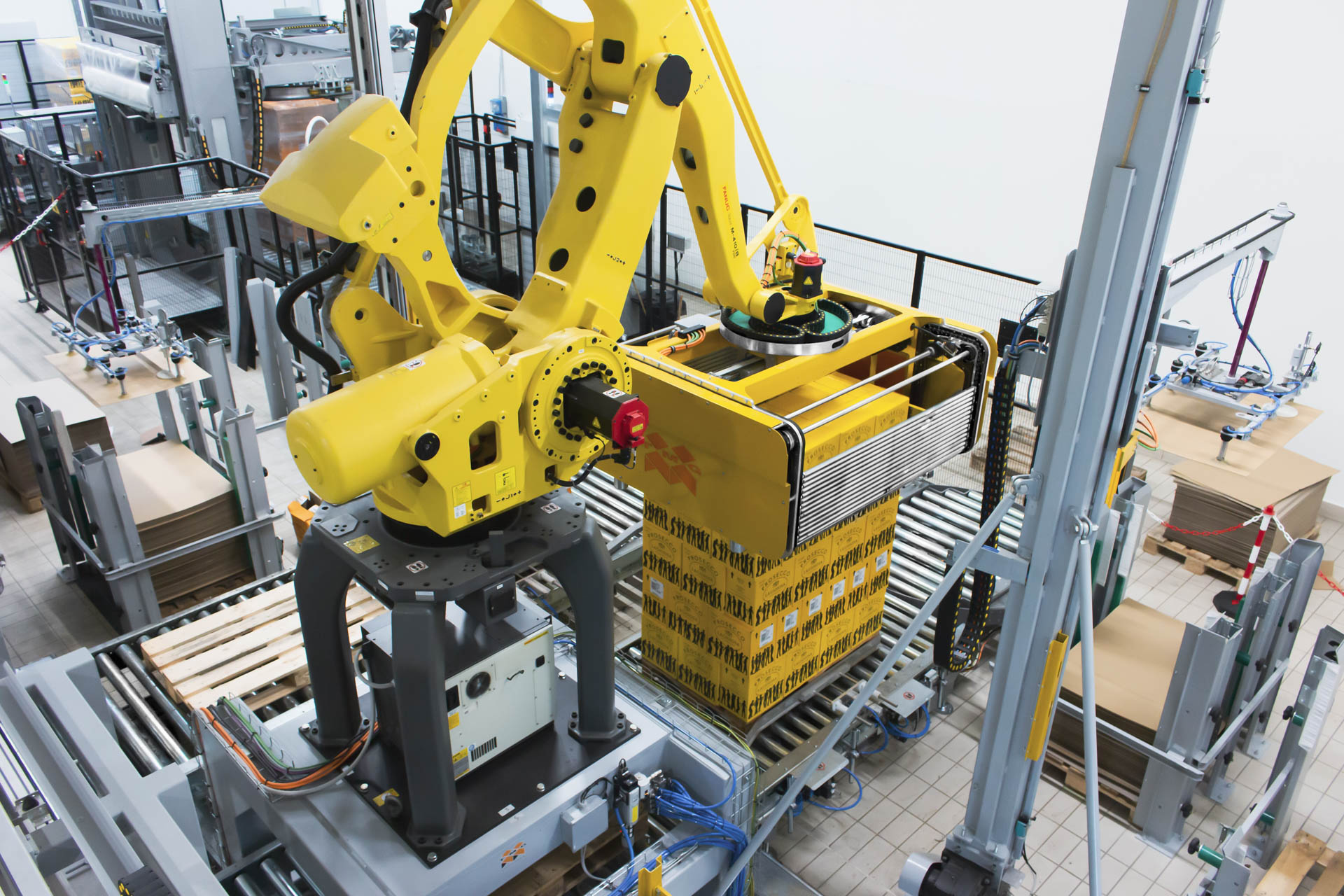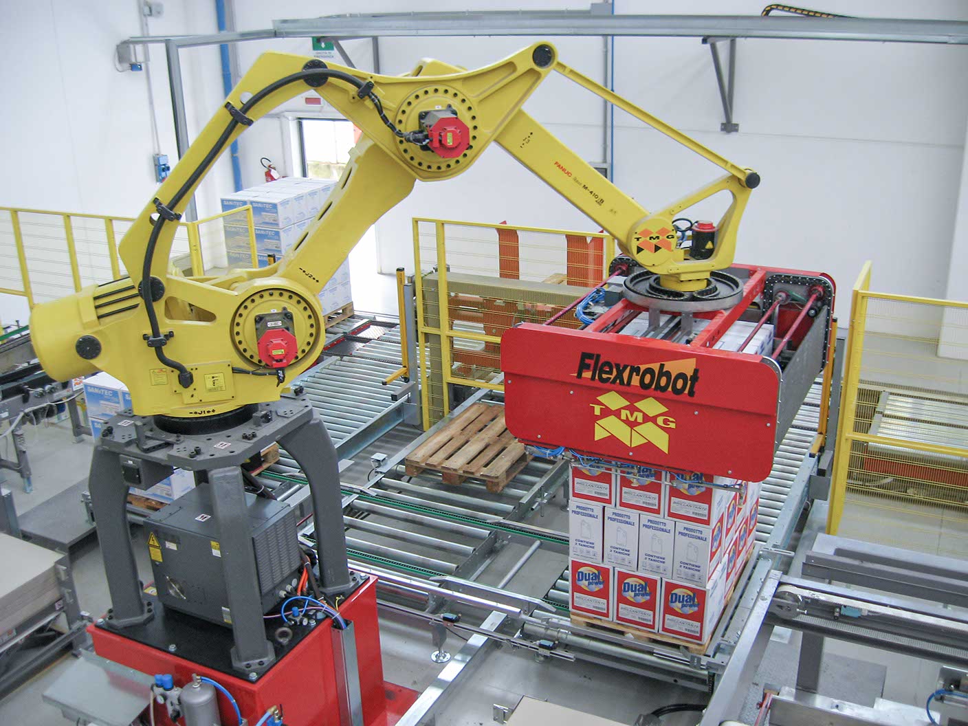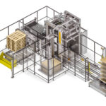 Low-level automatic palletiser with the pallet in a stationery position for medium production needs. Ideal for cartons, crates, jerry cans and shrinkpacked...