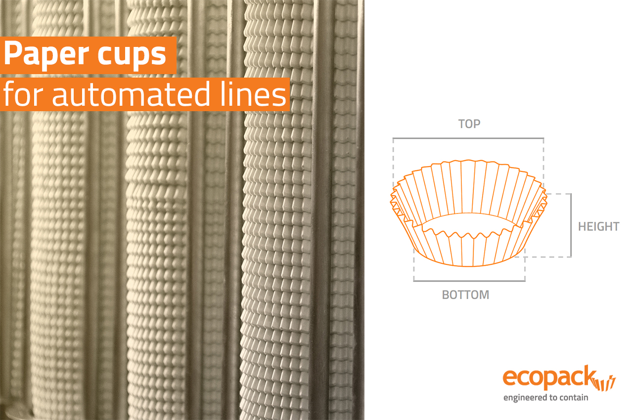 automatic denesting phase. Ecopack paper cups are ovenable (max 428 °F), freezable (0 °F), suitable for denesters and for air fryer.