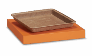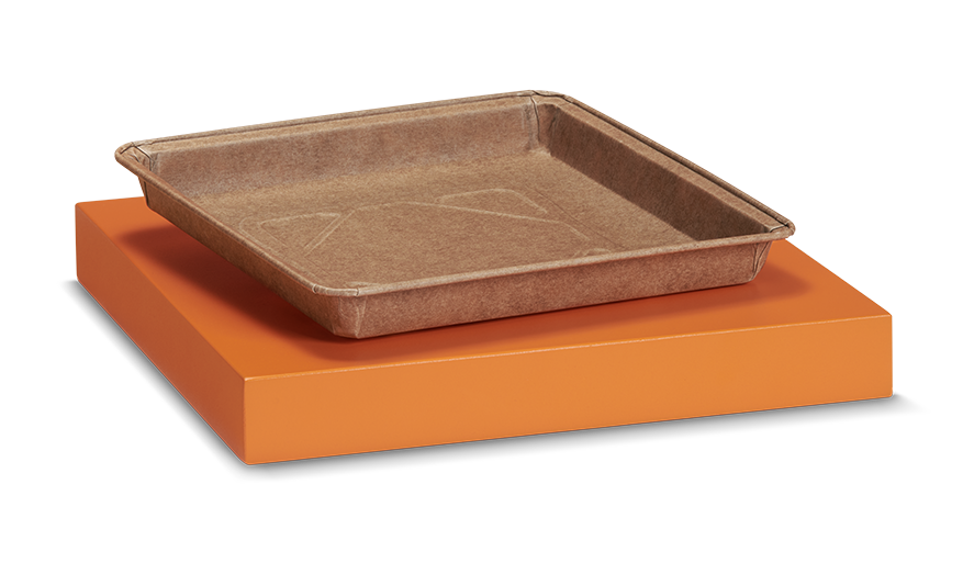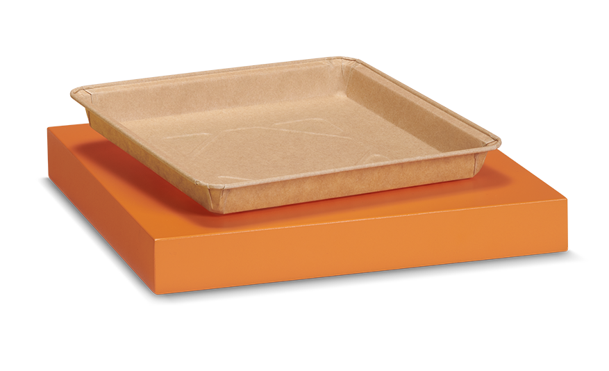 The paper moulds with rolled edges can also be combined with PET lids, making them suitable for delivery, take-away and use in delicatessen or large retail counters.