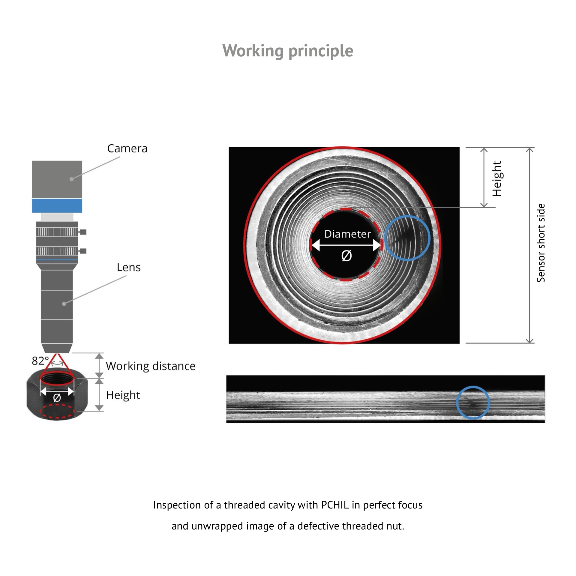 Opto Engineering PCHIL series features hole inspection lenses for the inner inspection of cavities and containers in perfect focus.