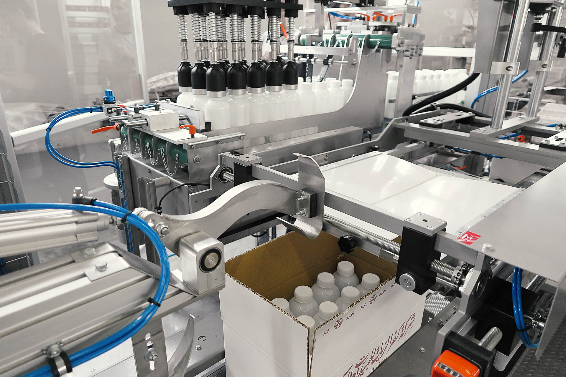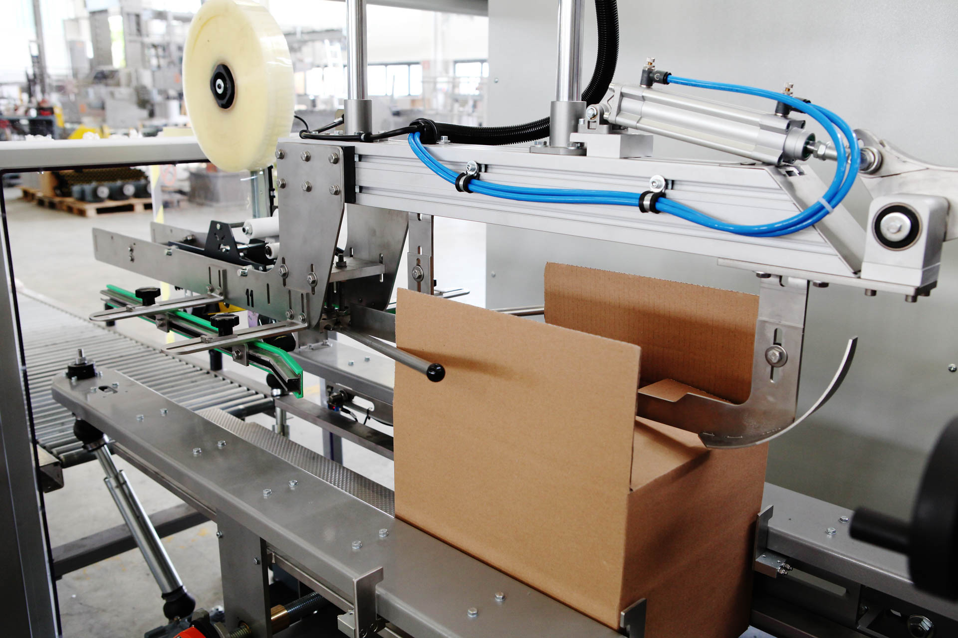 New generation automatic packing station, with carton erectoning, carton packing and carton sealing integrated in a single solution. The structure is made in painted steel and is complete with safety guards with Plexiglass access doors equipped with safety sensors according to the highest safety standards. Work process is fully automated and independent, reducing the operator’s intervention to supply the adhesive tape or the glue and the cartons. It is an extremely compact and versatile machine, designed with great attention to the accessibility, cleanliness and ergonomics of the components, able to perfectly meet all the packaging needs of the food, chemical and pharmaceutical industries. The operators manage all the process by an user friendly HMI panel.