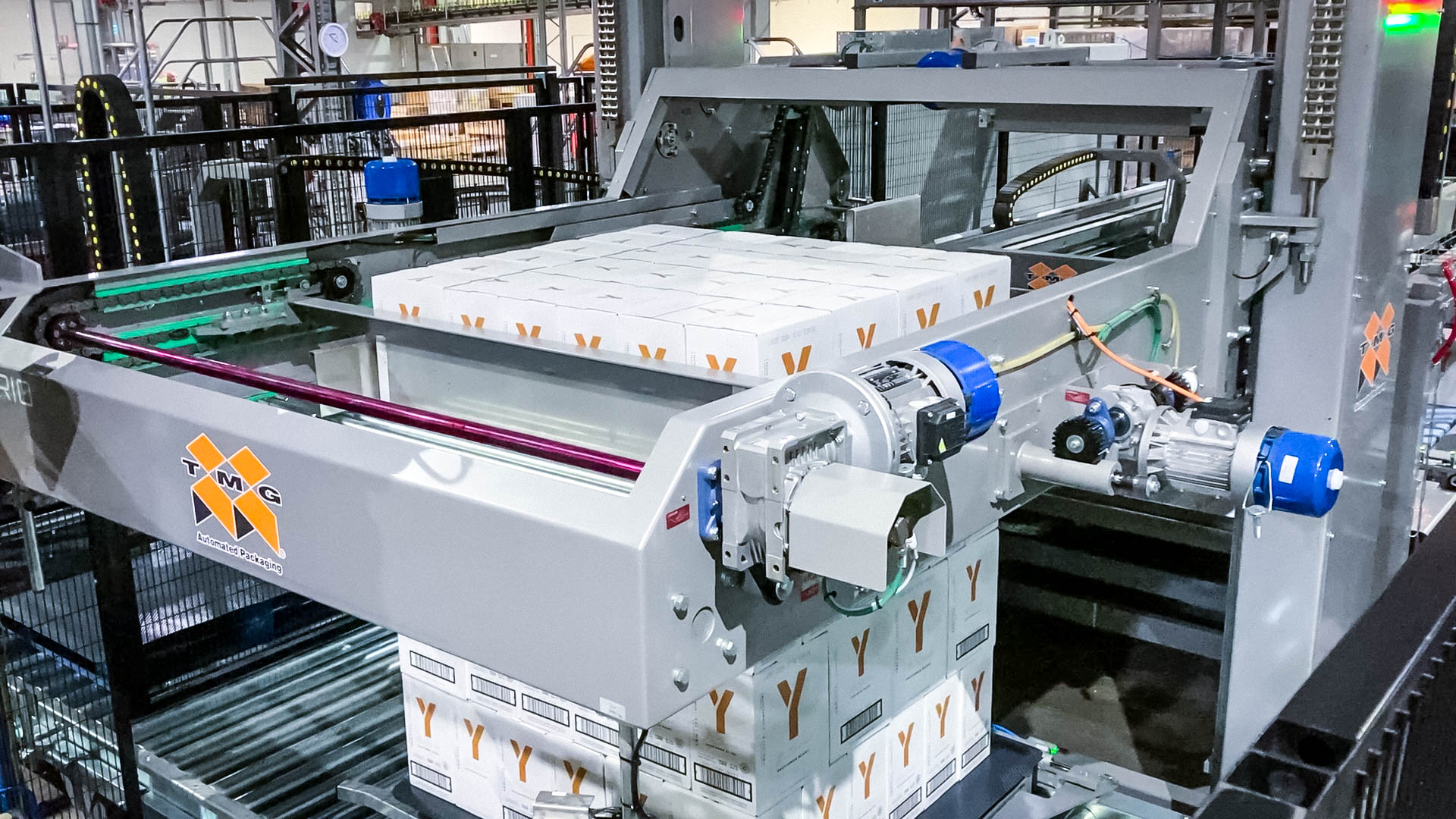 TMG Impianti designs and manufactures automated packaging and palletizing systems for a wide range of industries, ensuring efficiency, flexibility, and reliability in end-of-line solutions.